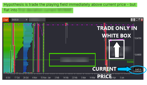 If the market moves from its current level, reaching the white-boxed area, trading on the long side is triggered.