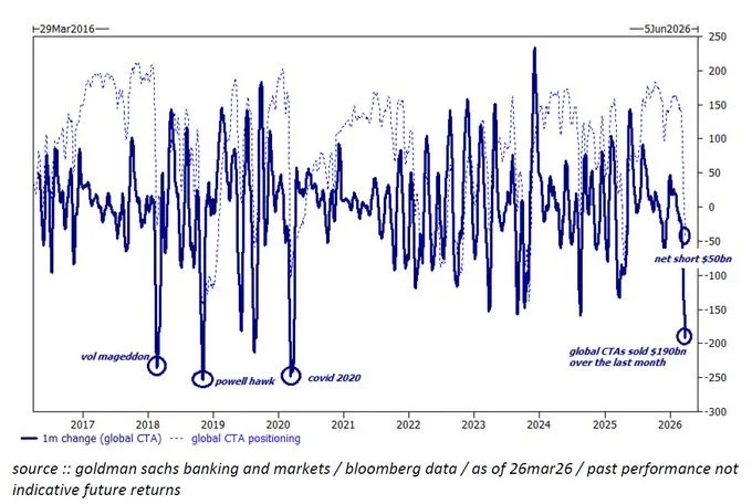 "CTAs sold $190B this month, quickly approaching max short levels."