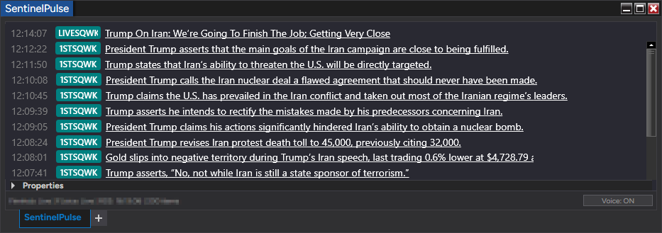 The preparation meant building for it. SentinelPulse for news aggregation across multiple real-time news services, casting a wide catchment net for market-moving events.
